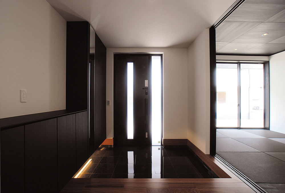 広々とした玄関土間の横にはジャパニーズモダンの和室が続きます。